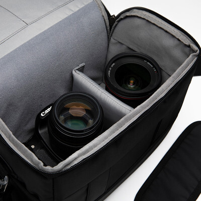 高密度面料,安全防水,即使小雨也能安心外出,不易渗透。内置加厚隔板,缓震抗冲击,保护内部相机部件,使用更安心。