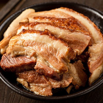 精选新鲜优质猪五花肉,肉质饱满鲜嫩,让人久吃不腻。结合金黄的色泽,看着让人馋涎欲滴,勾起食用的欲望。