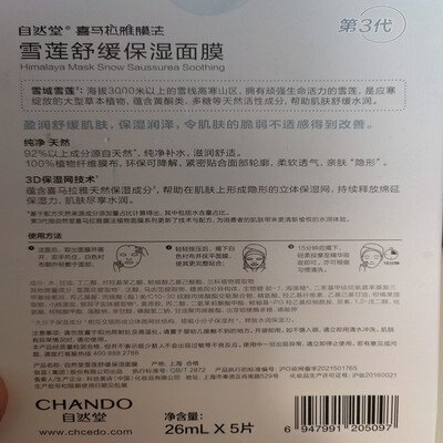 自然堂 舒缓保湿 面膜