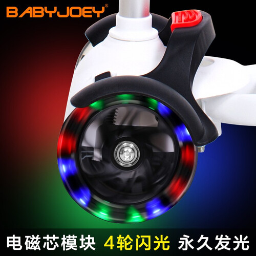 加宽轴距,稳固立体结构,使四轮抓地更稳,安全不侧翻。四轮炫酷发光设计,无需电池,转动发光,孩子更喜欢。