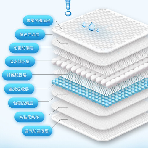 全芯体结构,瞬吸锁水,不易断层、起坨。薄至2毫米,穿着轻若无感,不留负担。3D蜂窝空气感面层,触感柔软舒适,远离湿热。