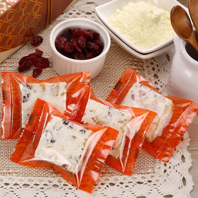 选用法国的奶油、新西兰奶粉、海藻糖、蔓越莓干、坚果为原料,手工制作。口感绵滑细腻,散发浓郁的奶香。