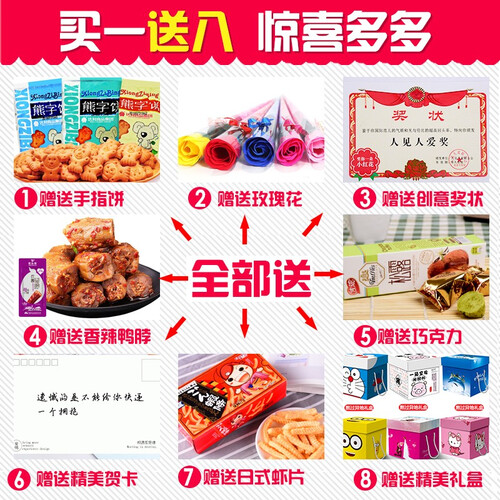 含有多种口味的零食大礼包,丰富零食任你选择,好吃难忘。干净卫生的独立包装,适合闲时与朋友分享,共享美味时刻。