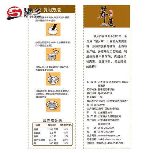 望乡营养丰富荞麦挂面
