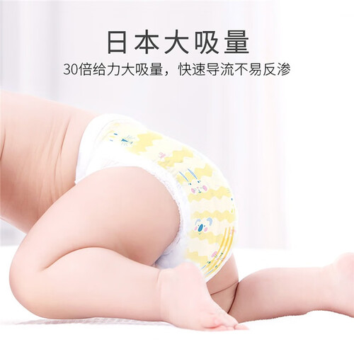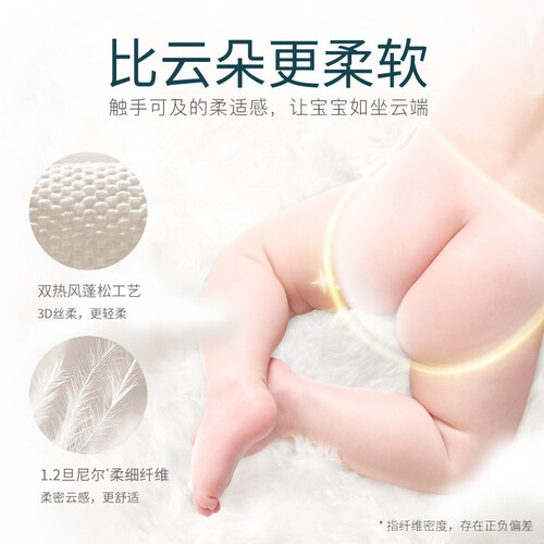 采用云柔的表层设计,触感亲肤舒适,没有刺激感,呵护宝宝娇嫩的肌肤。吸湿性能更加强悍,瞬间可以吸干大量尿液。