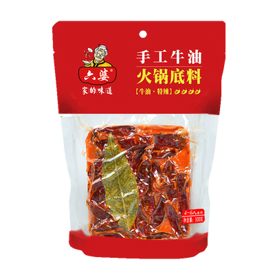 采用手工熬制的牛油火锅底料风味纯正,加上醇香味美的豆瓣酱,让火锅味飘香浓郁。麻辣醇香的汤底,透露着红亮的色泽,诱人馋涎。
