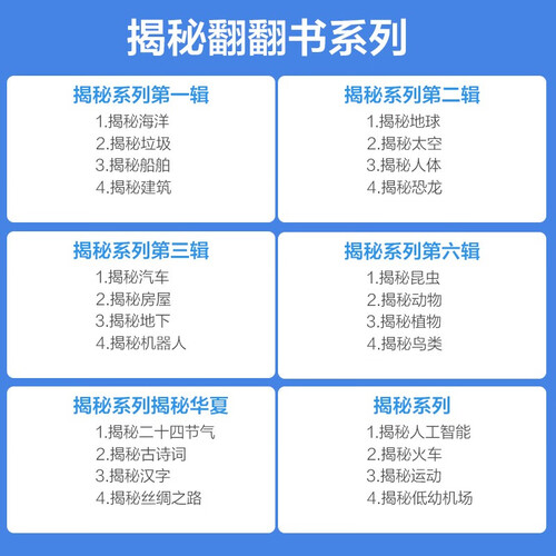 这套书用翻页的形式,建立知识之间的联系,体现知识之间的逻辑,有助于孩子理解,解密大千世界,让孩子爱上科学。