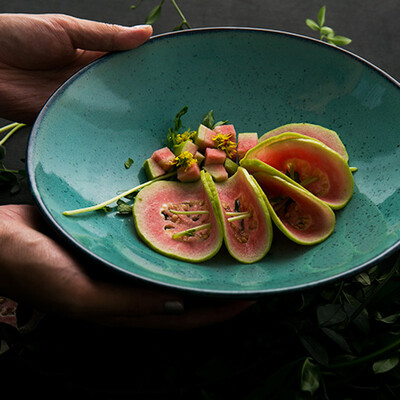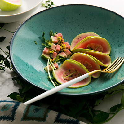 源于自然的造物灵感,选用粗陶烧制,天然环保,手感光滑细腻。搭配黑色手工描边与复古绿绿窑变釉面,呈现出冷艳美感。