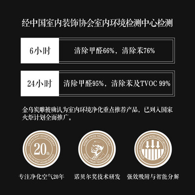 金乌炭雕的这款创意摆件,选用高吸附值优质活性炭,可全天候吸附室内有害气体,给家人健康的呼吸环境。