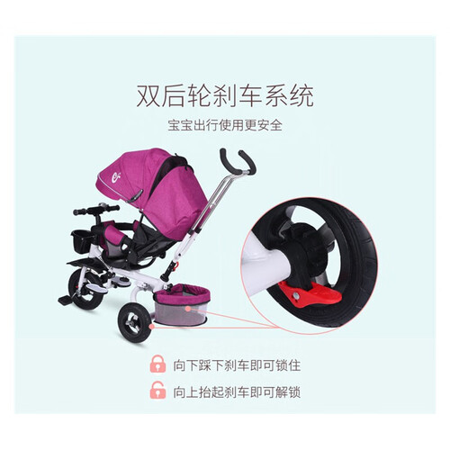 车身可折叠,携带方便,座椅能前后换向,车棚和推手可以拆卸,满足不同年龄阶段使用。配备免充气防爆胎,减震耐磨呵护宝宝发育。