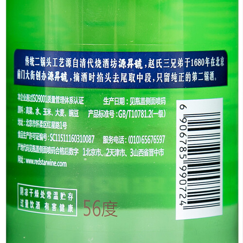 红星 56度二锅头白酒