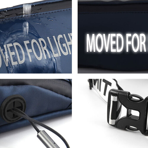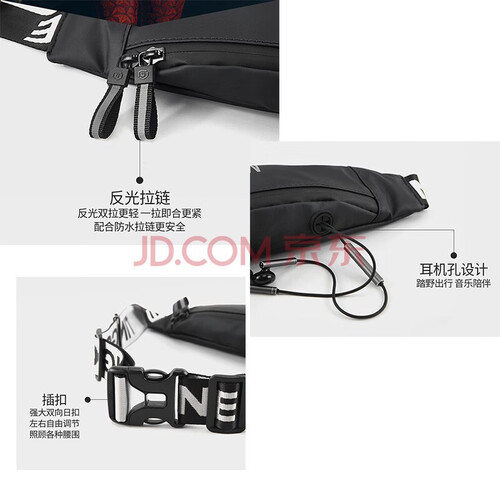 细节贴心,设有反光防水拉链,提高安全系数,拉合紧密。经久耐用的双向插扣,左右自在调节,适用于不同的腰围。