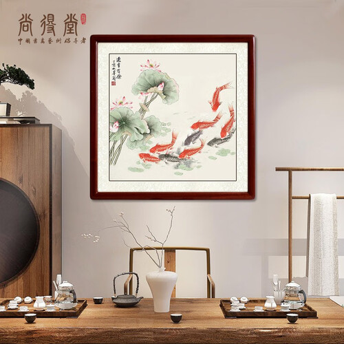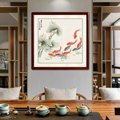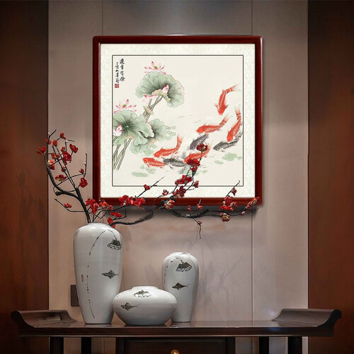 九鲤鱼寓意长长久久,吉祥如意,年年有余;荷花寓意和和美美,富贵吉祥,为你的家居更添风采。