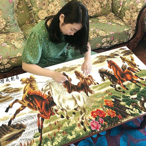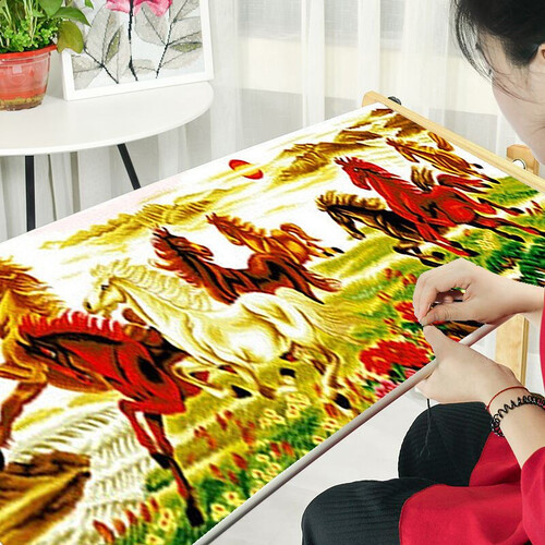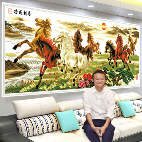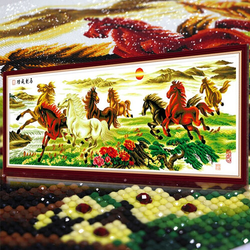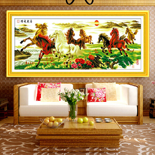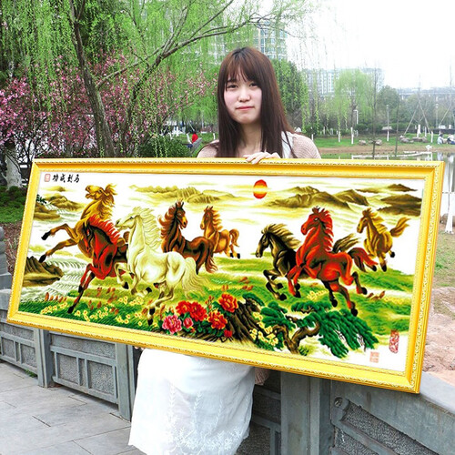 老街缘马到成功八骏图十字绣