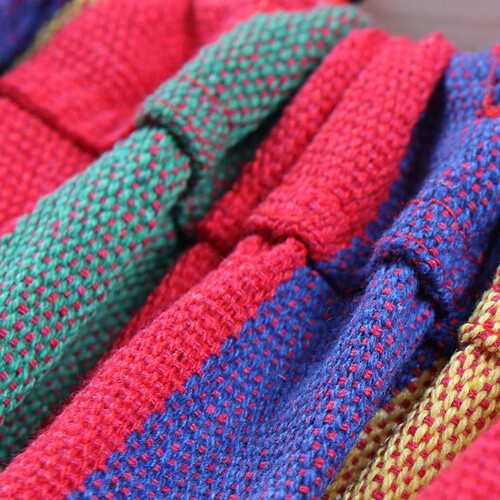 吊床两侧拥有月牙棒,具有不错的稳定性,躺卧舒适更安心;优质环保帆布的使用,不易掉毛和褪色。