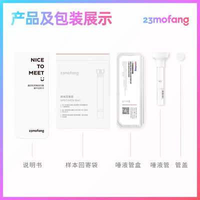 唾液采集,一次检测。自带唾液采集管,可以快速提取人体DNA,支持一次性检测多个项目,全家人都能使用,有效预防多种疾病。
