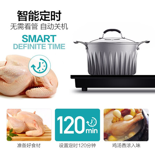 采用智能定时设计,让你无需长时间看管,让使用更加轻松便捷。电磁炉头采用分体设计,可拆卸使用,减少空间占用。