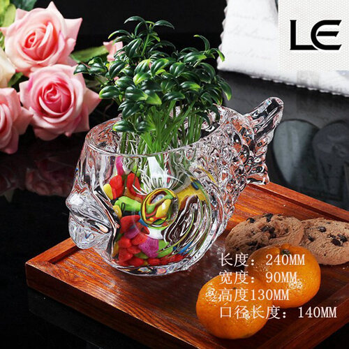 整体金鱼造型创意美观,瓶口设计简单独特,细节处耐人寻味;玻璃制品无孔设计,可作水培或种绿植,还可作为家居摆件。