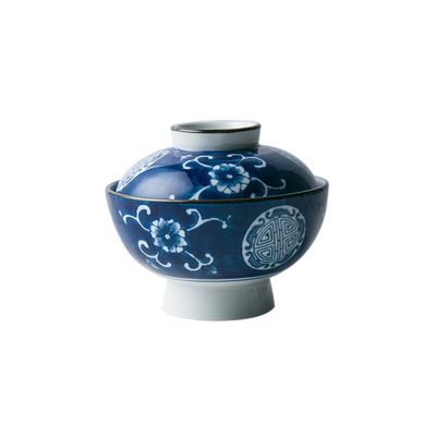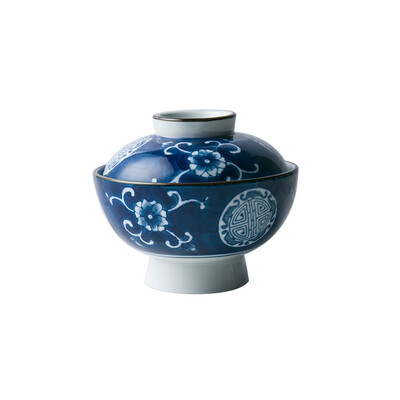采用手绘篮彩工艺,花纹逼真精致,碗口设计合理,带有盖子,保温效果好,釉面光滑精美,触感细腻。