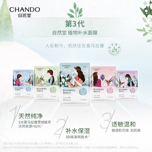 选用了舒适柔软的天丝膜布,材质环保,能够吸附更多的精华。含有多重植物精粹,搭配天然冰川水,能够渗入皮肤深层,补充水分。