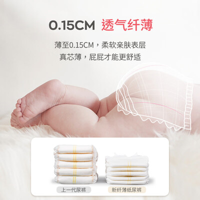 1.5毫米纤薄设计,轻盈裸感仿若无物,舒适自如宝宝随心畅玩。三条尿液导流槽设计,有效分散导流尿液,提高渗吸效率持久干爽。