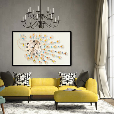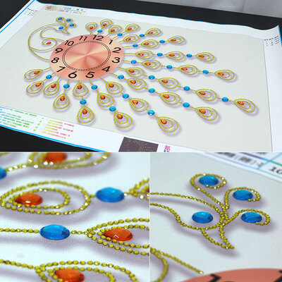 异形钻设计,棱角分明,在光线的折射下,散发着神秘光芒,璀璨而温暖。孔雀钻石画钟造型设计,优雅美观。