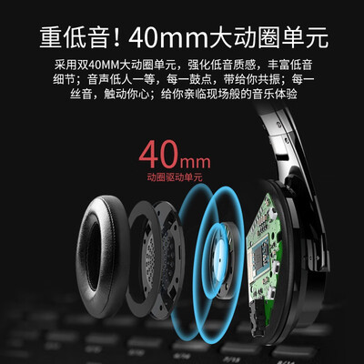采用双40MM大动圈单元,强化低音质感,呈现丰富的细节。全包裹式大耳罩设计,实现更加舒适的佩戴体验。