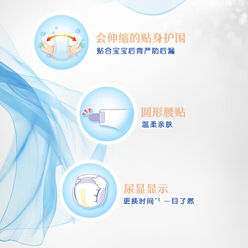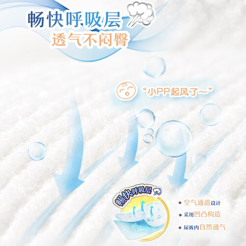 日本进口品质,采用温和的伸缩无纺布护围,减轻腿部紧勒感,宝宝活动更轻松。空气感丝柔材质,凹凸构造,让屁屁时刻保持干爽。