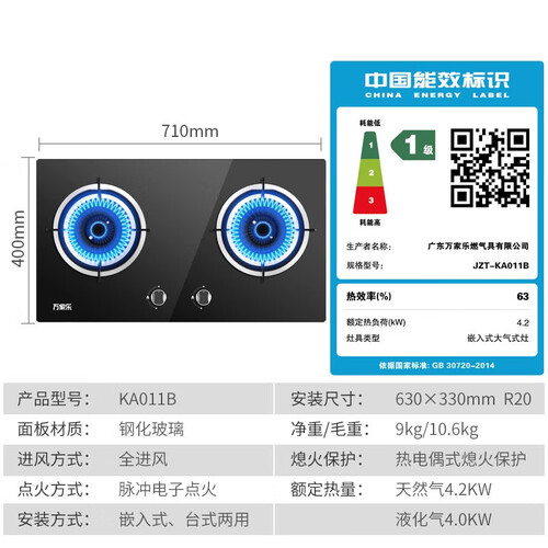 4.2KW大火力,增加火焰与锅底接触面积,热量分布均匀。台嵌两用式设计,可轻松容纳多种厨房装修风格。