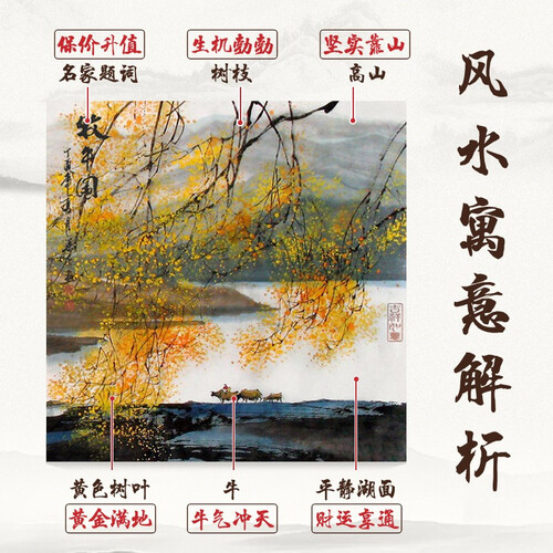 满屏遍布黄色的树叶,寓意美好,自用送人都很合适。水牛、湖水、青山,展现出如诗如画的江南美景。