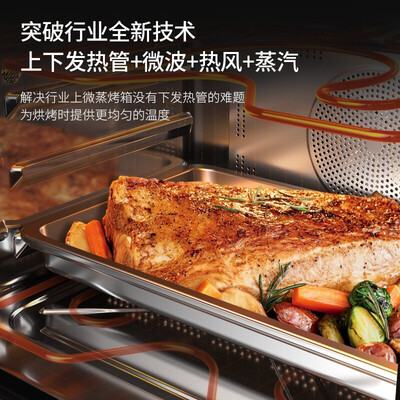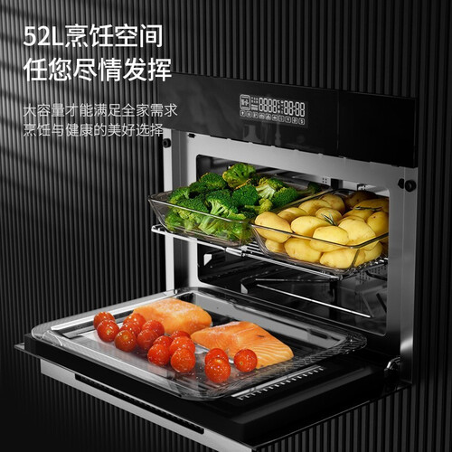 具有蒸汽直喷循环加热,针对多种食材,调制相应温度。自带51道智能菜谱,告别菜单选择困难,轻松搞定每日三餐。