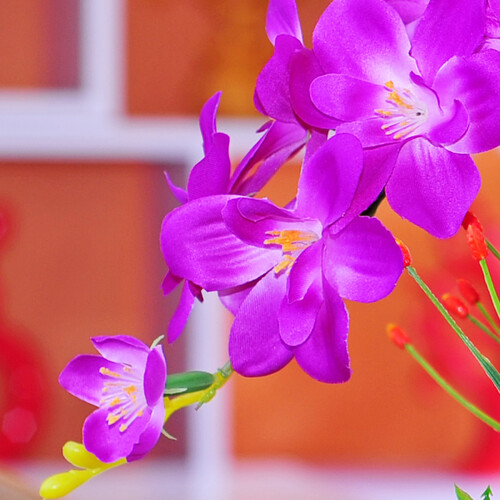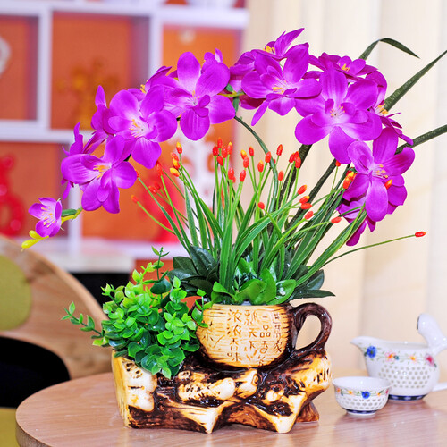 深紫色的沧兰,做工精湛,生动逼真,释放高雅气质。因其采用绢布材料制作,仿真效果好,提升视觉冲击力。