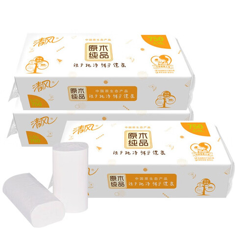 清风 原木无芯三层卷纸