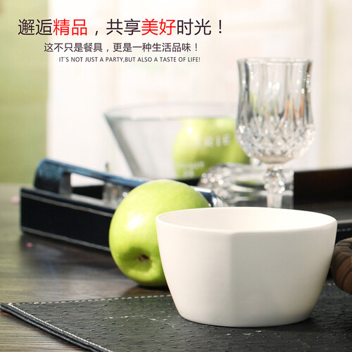 采用优质骨瓷制成,碗质感纤薄轻巧,视感光滑细腻有光泽感。纯白色简约设计,时尚大气。