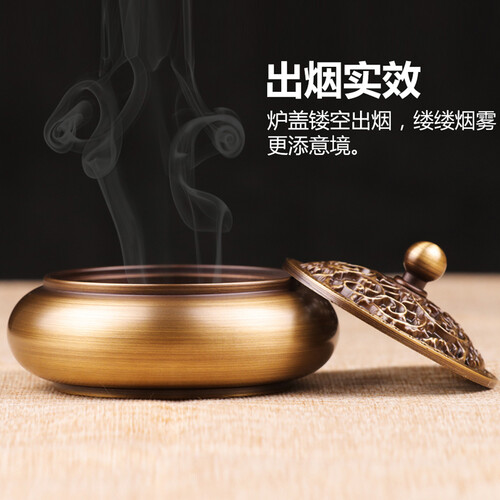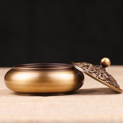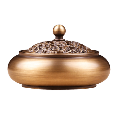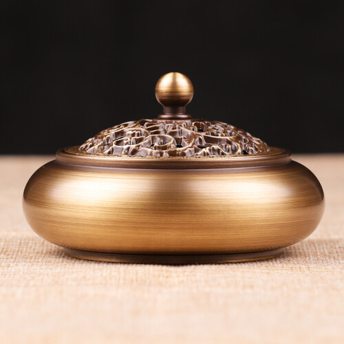 这款香薰座是用铜作为原材料打磨而成的,做工精细,器身圆润有光泽,顶盖是镂空的藤蔓雕花,古典又不失精致。