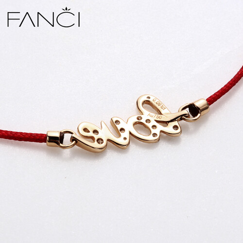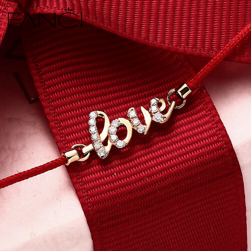 将浪漫的LOVE元素融入在手链表面,能够巧妙的表达爱意。配合红色的手绳设计,更是有祈求美好姻缘的希望。