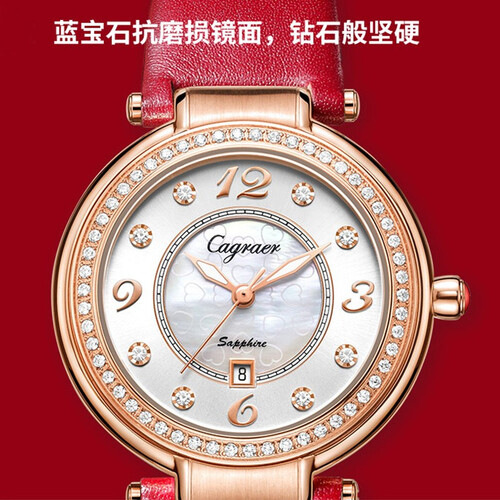 本款手表选用精钢打造表壳,配以镶钻装饰,设计尤为精巧。牛皮材质的表带具有轻巧便捷的特点,进一步提升佩戴的舒适性。