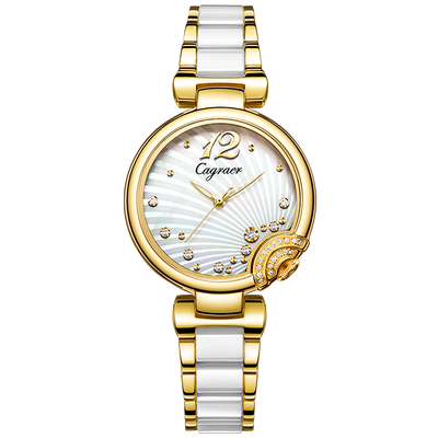 海螺纹表冠覆以锆石镶嵌,华美雍容之余且增添佩戴的趣味性。原装进口石英机芯,走时精准运行平稳,无需频繁进行时间调节。