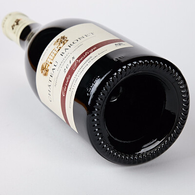 AOC级的红酒为三种葡萄品种酿造而成,带有樱桃红的色泽,果香浓郁,口感柔顺。红酒的瓶底带有防滑凹槽,放置更安全。