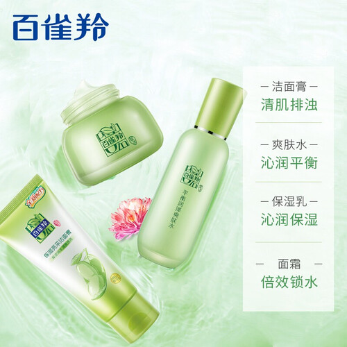 百雀羚草本精粹套装,深清洁透清肌保湿洁面温和清肌深入清洁油垢,注入强大补水能量唤醒肌肤活力,舒适不紧绷。