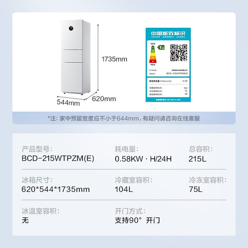 拥有一级能效,节能环保,耗电量低,节省电费支出。搭载风冷无霜技术,制冷均匀不易结霜,从此摆脱手动除霜困扰。