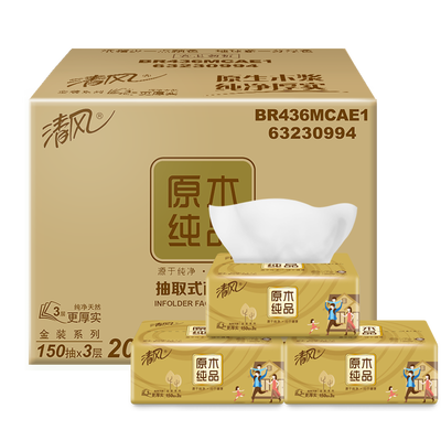 精选原生木浆材质,纸质细腻柔滑,令肌肤倍感舒适。不含可迁移荧光剂,带给家人健康呵护。双压线紧密结合,不易松散不掉纸屑。