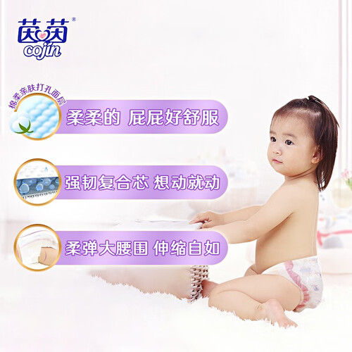 柔润清新材质,带来轻盈质感,微型透气孔透气亲肤,复合芯体不易断层。良好的吸收锁水性能,让宝宝保持长久干爽状态。