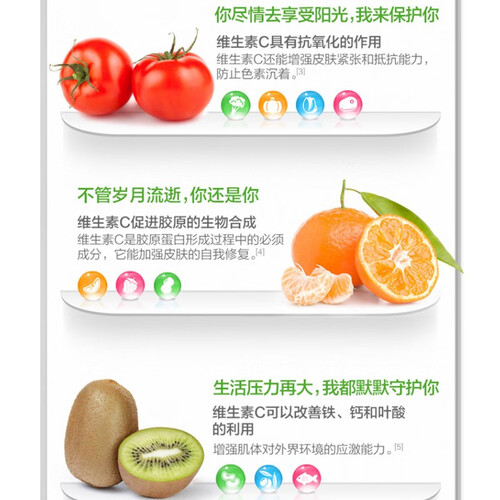 成分中的维生素C具有抗氧化作用,而且能防止色素沉着,长期服用有助改善肌肤状态,美白肌肤。