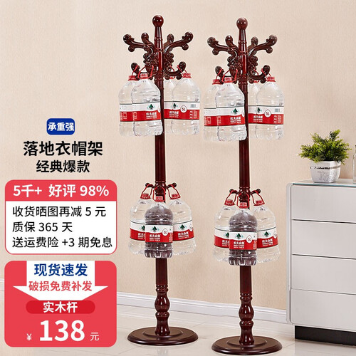 采用实木精心雕刻的衣帽架,精心打造出古典的造型,体现高贵的品质,加上经典的圆盘底座稳固耐用,支撑力好。