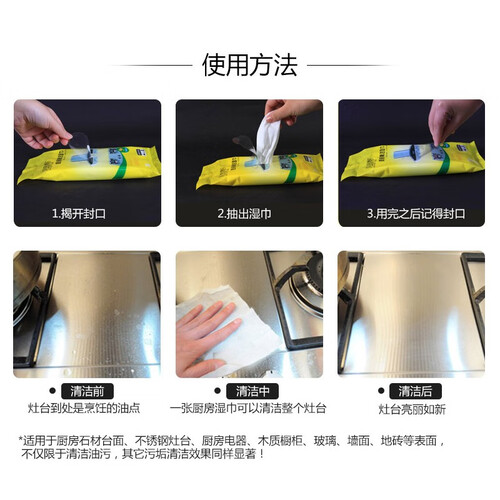 含有表面活性因子配方,吸附厨具油污,快速分解顽固污渍。优质无纺布材质,使用柔韧度高,不起球不变形。