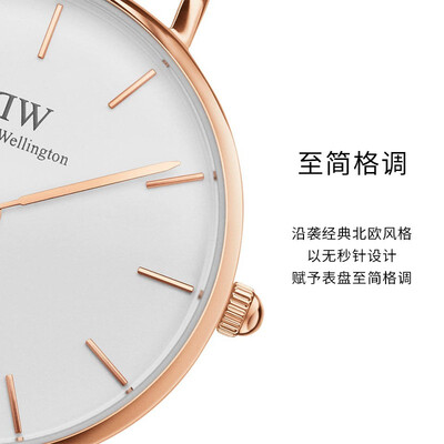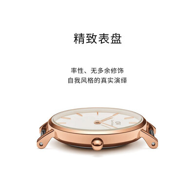 纯白色的表带有一种冷然禁欲的风格,适合气质女性的日常穿搭,金色的刻度和指针以及边缘设计注入了精致的味道。