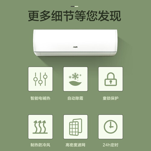 搭载除湿模式,能够营造干爽的生活环境,享受舒适生活。搭载智能电辅热功能,不用担心机身冻坏,无惧寒冷天气。