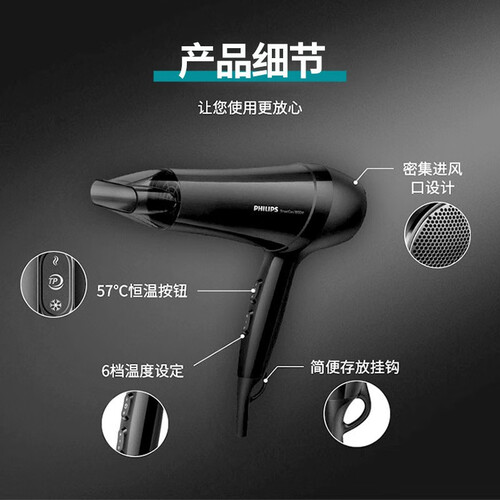 配备可旋转集风嘴,能够打造多种时尚造型,更具实用性。拥有恒温护发技术,有效减少发质损伤,使用更放心。