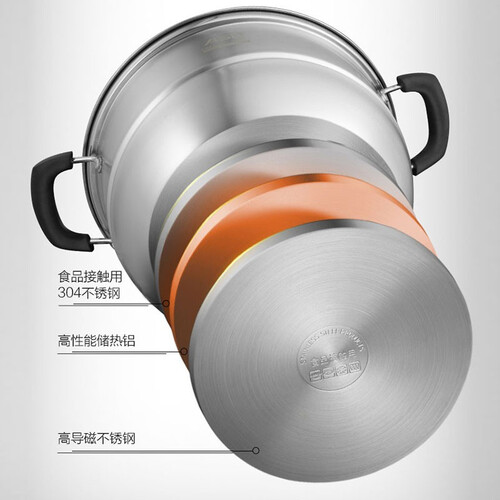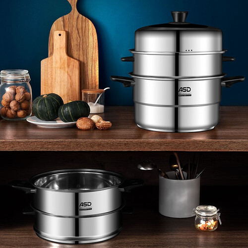 三层加高蒸格,可以蒸煮个头比较大的食材,防止变形。不锈钢锅身,能够承受高温,没有任何异味。